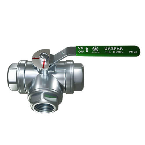 Кран кульовий триходовий муфтовий нержавіючий, тип L, куля-нж сталь 304, PTFE, PN25