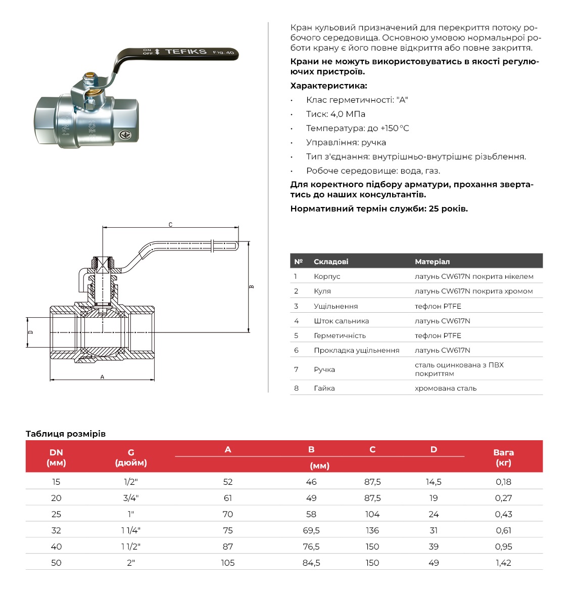Кран кульовий муфтовий латунний, PN40, вода, газ