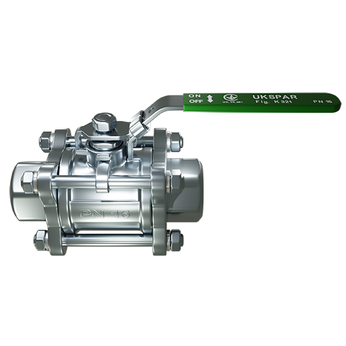 Кран кульовий трискладовий муфтовий нержавіючий, куля-нж сталь 304, PTFE, PN16