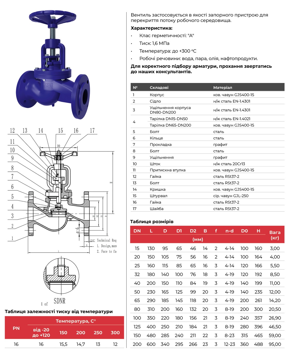 Конструкція клапана: чавунний корпус і нержавіюча тарілка