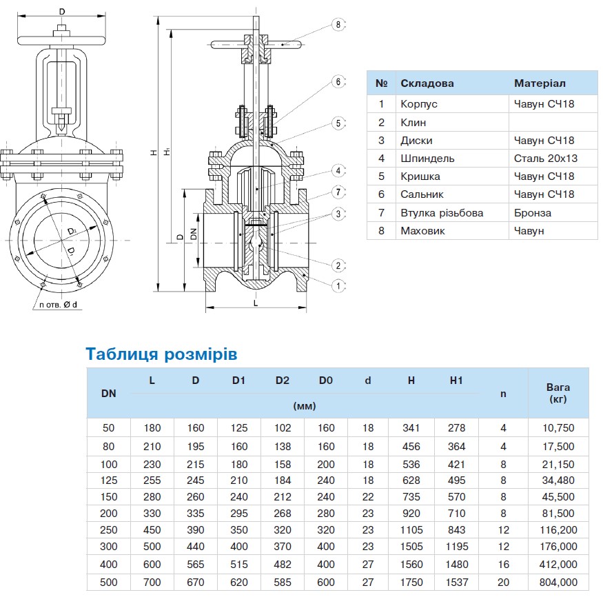Засувка 30ч6бр паралельна чавунна фланцева, PN10