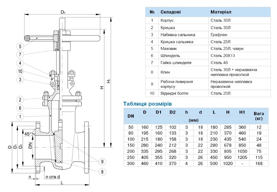 Засувка 30с41нж фланцева сталева (з нержавіючою наплавкою клина), PN16