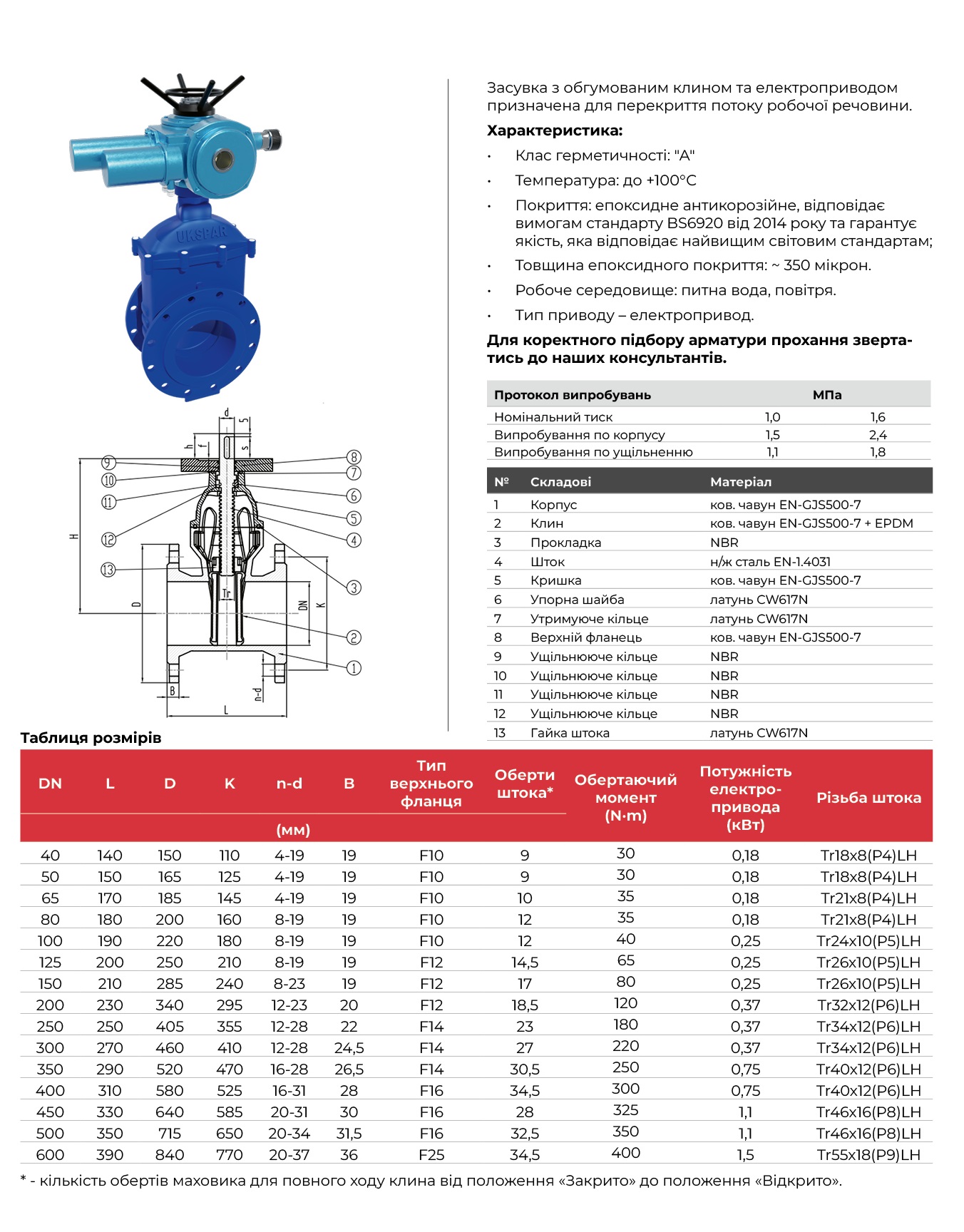 Засувка клинова з електроприводом чавунна фланцева, F4, клин-чавун GGG50 + EPDM, PN16