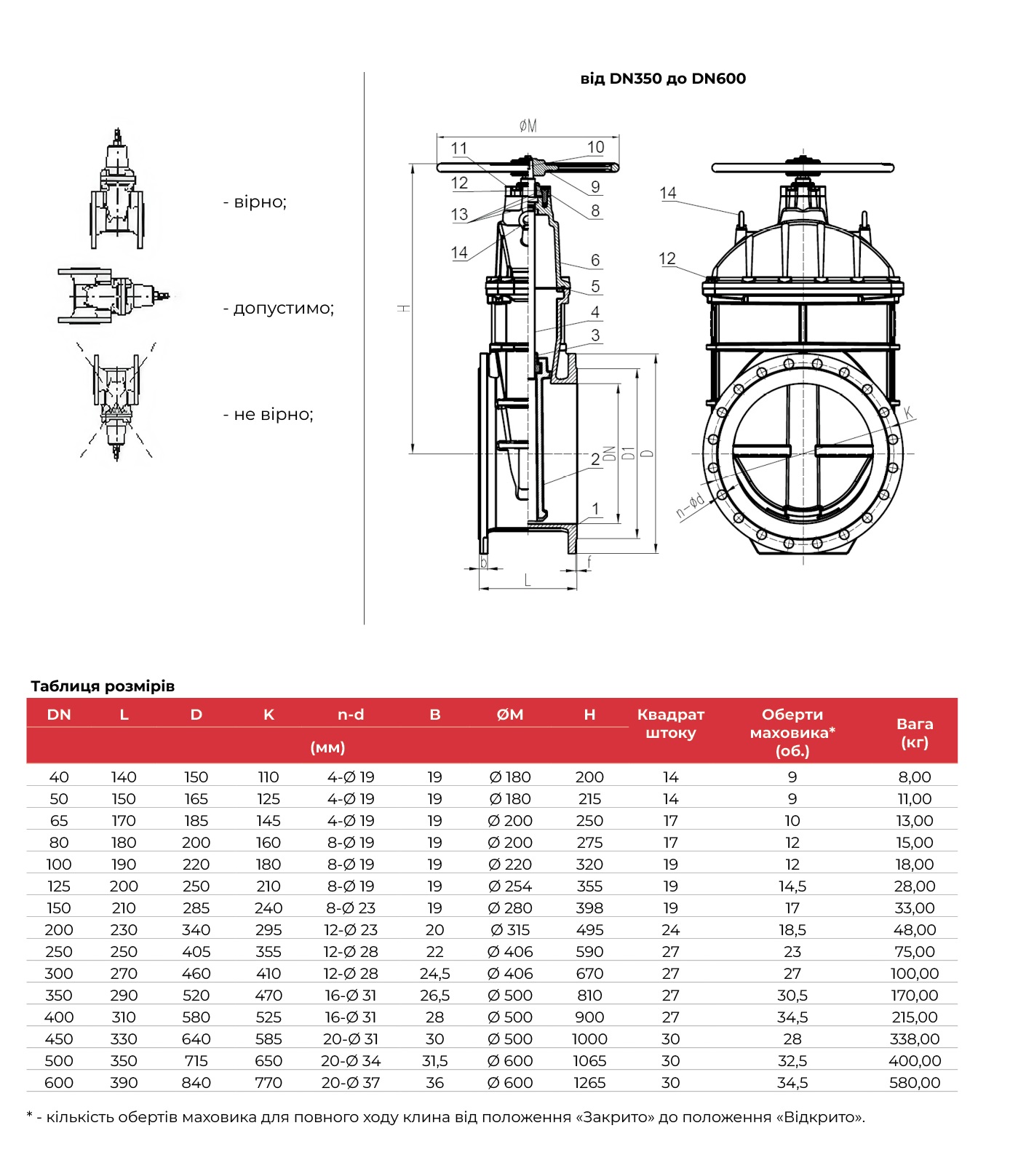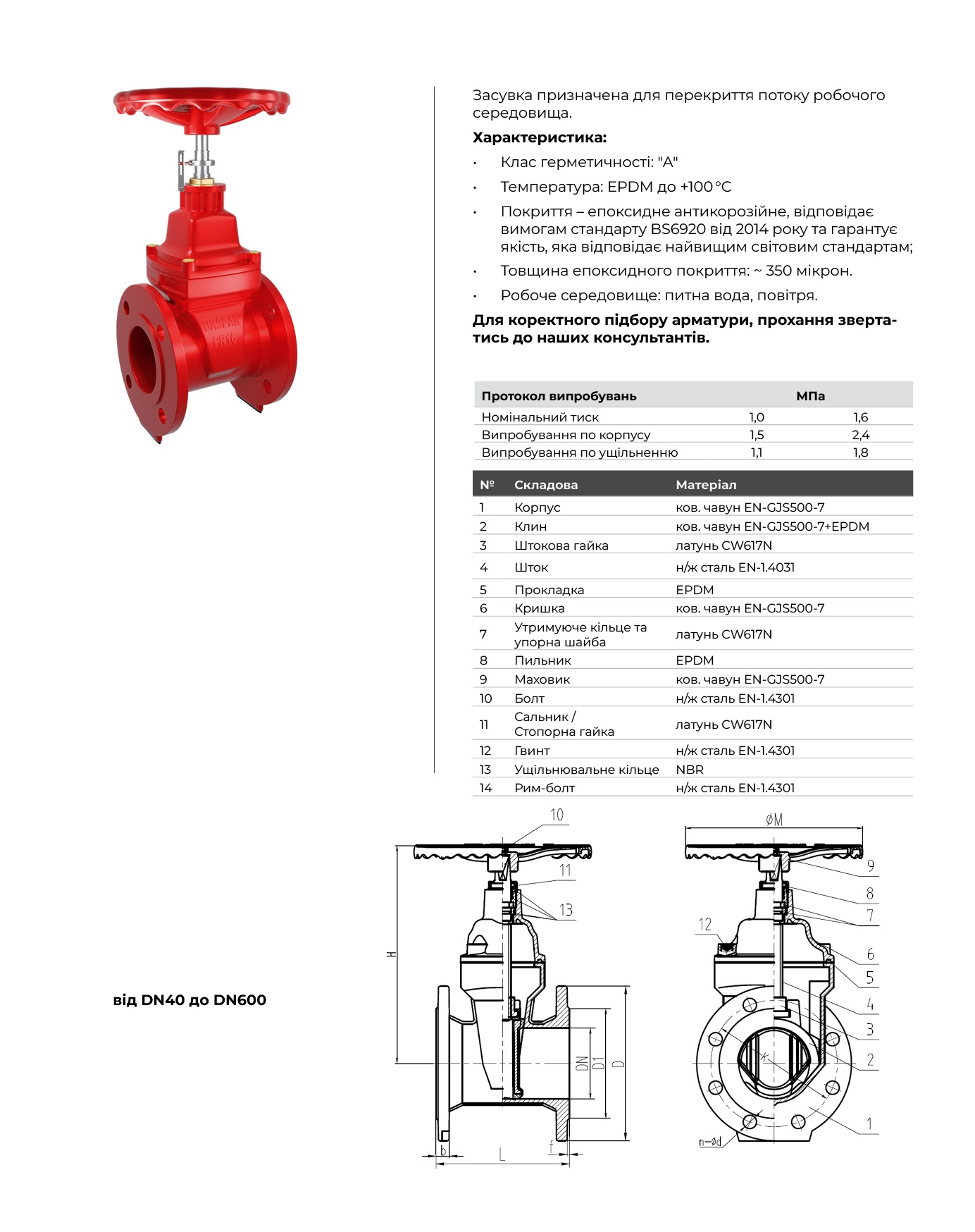 Засувка клинова з вказівником положення фланцева чавунна, F4, клин-чавун GGG50 + EPDM, PN16