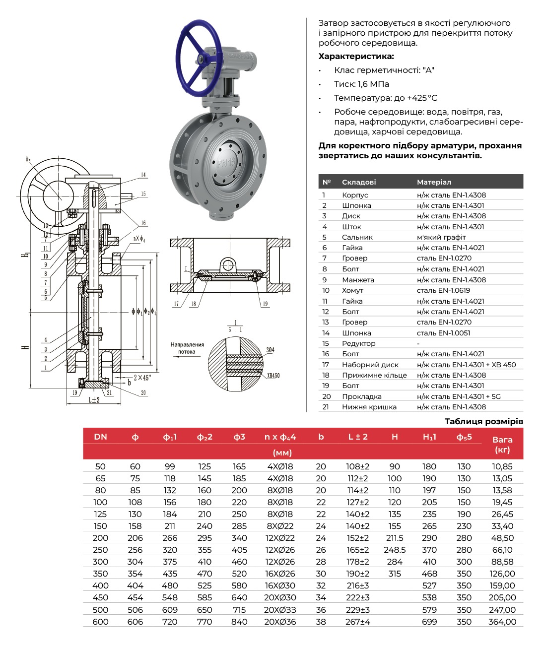Затвор фланцевий з ексцентриком нержавіючий, диск-нж сталь 304, PN16